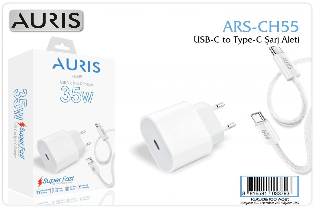 Auris CH55 35W USB-C To Type-C Super Fast Şarj Aleti Seti