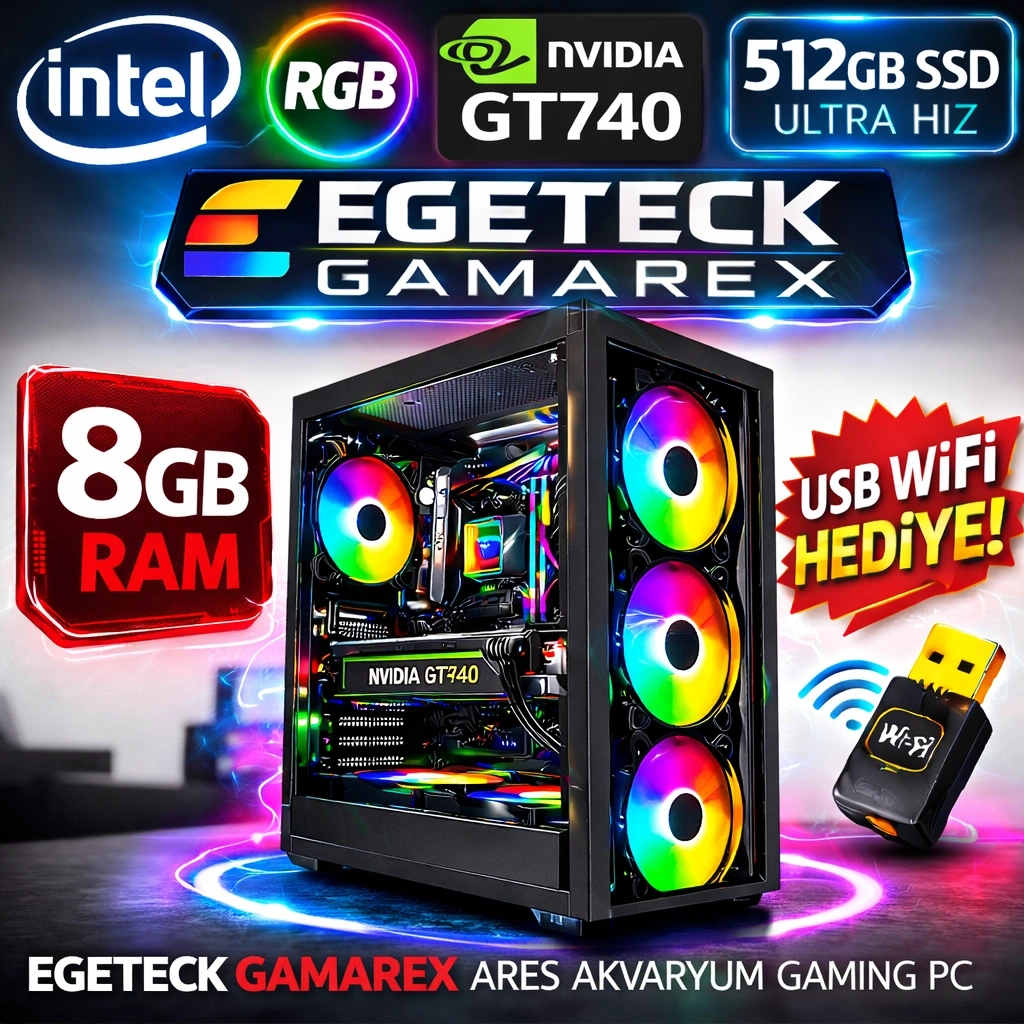 EGETECK Gamarex i5 3470 8GB RAM 512GB SSD GT740 128 BİT Akvaryum Gaming Oyuncu Bilgisayarı (GT8512)